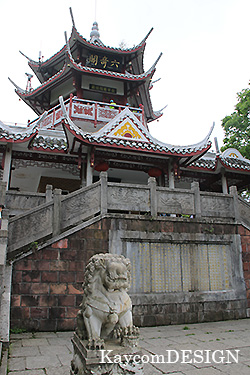 六奇閣は上まで上ることができ、途中の階や最上部から外の景色を見ることができます。ちょっと下の方には、さきほど乗ってきたロープウェイの姿もチラリ。